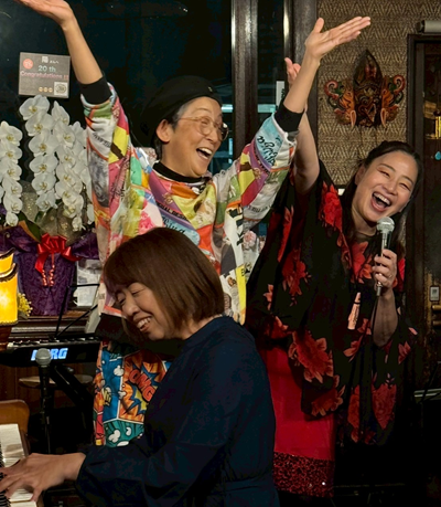 今日の出演はマユミとマユミとヨーコのヴォーカルの阪井楊子さん、ピアノetc.の宮川真由美さん&小場真由美さんでした。