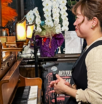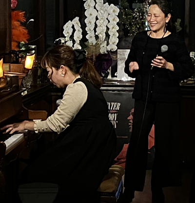 今日の出演はヴォーカルの小柳淳子さんとピアノの志水愛さんでした。陽では初共演の2人、期待通りの素晴らしい演奏を聴かせてくれました。