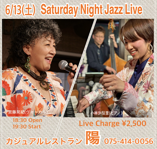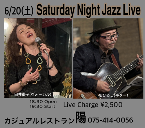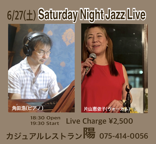 次週3/21(土)の出演はおなじみのヴォーカリスト片山恵依子さんと久しぶりの登場になるギタリスト大野こうじさんです。陽では初共演のお2人、楽しみですね。