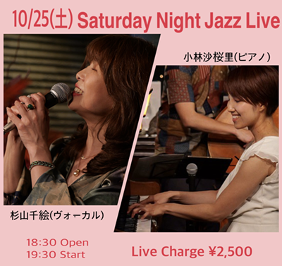 今日の出演はヴォーカルの杉山千絵さんとピアノの小林沙桜里さんでした。大人気の2人が陽で初共演ということで、2人もお客さまも期待でいっぱいのライブになりました。